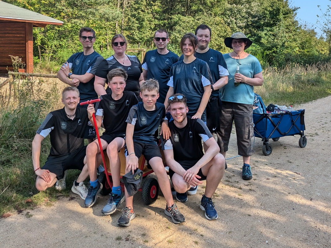 Deswegen waren wir gut ausgerüstet und sind mit 2 Bollerwagen, 3 Kästen Bier einem Kasten Fassbrause, 12 Litern Wasser sowie Verpflegung an den Start gegangen.