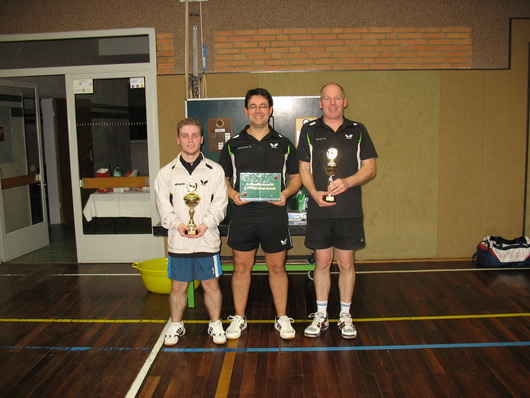 Wie geschrieben war der 6.1. der Tag für die Erwachsenen. Leider waren von 16 möglichen Spielern nur 12 am Start. In vier Gruppen zu drei Spielern wurde eine Vorrunde gespielt. Die besten Zwei kamen in die Endrunde und alle Dritten spielten Jeder gegen Jeden die Platzierungen aus. In dieser Gruppe siegte Marco Todde vor Sven Geuenich und Dritter wurde Steffen Loos. Die Endrunde wurde im Doppel KO. ausgetragen. Manuel Varona ist neuer Vereinsmeister. Nach spannendem Spiel wurde Daniel Suriano Zweiter und Wilfried Esser erspielte den dritten Platz. Auch hier gab es bei der Siegerehrung kleine Geschenke und in gut gelaunter Rund wurde noch lange über die schönen und spannenden Spiele geplaudert.