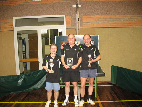 Der 11.12.2009 war der Tag der Entscheidung für die Herren. Von 15 möglichen Teilnehmern haben sich 12 der Herausforderung gestellt und an den Vereinsmeisterschaften teilgenommen. Ich finde es gut, dass sich nicht nur Mannschaftsspieler sondern auch Ersatzspieler und Hobbyspieler an dem Turnier beteiligen. Es ist gut zu wissen, dass Alle Teamgeist haben. Nun zu den Resultaten. Die Vorrunde wurde in zwei Gruppen zu sechs Spielern absolviert und die zwei Bestplatzierten qualifizierten sich für das Halbfinale. Im Spiel um Platz drei trafen Jörg Roß und Volker Rügen aufeinander. Nach fünf spannenden Sätzen durfte Volker Rügen sich über den dritten Platz freuen. Noch spannender und auf einem hohen Niveau verlief das Spiel um den ersten Platz. Wilfried Esser wurde erst im fünften Satz und mit nur zwei Punkte Vorsprung neuer Vereinsmeister. Daniel Suriano ist Zweiter. Nach der Siegerehrung, der Überreichung der Pokale sowie der Geschenke saßen wir noch lange in gemütlicher Runde zusammen und feierten die Sieger. Ein schöner Abend und ein spannendes Turnier waren zu Ende. Zu den Rückrunden wünsche ich den Mannschaften viel Erfolg.