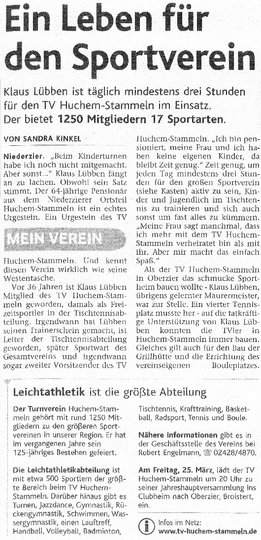 Artikel über Klaus Lübben vom 18. März 2011 aus den Dürener Nachrichten:
