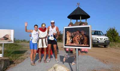 "Cäsar" mit seinen Löwen am Römerturm mit der späteren Siegerin Annette Geiken (LG RWE Power)